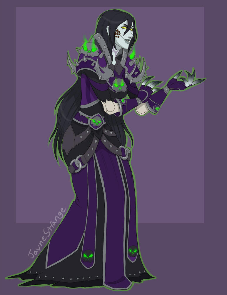 History: Born and raised in Hillsbrad, she was a traveling performer in her living days. During the war, she was a causality of the plague and was raised as a forsaken. She took up engineering, working for the RAS and along the Forsaken Front line, before she stepped back and joined a theatre troupe. After performing for several years, she retired after being reconnected with her long-lost brother.Notes: Formerly with the Tirisfal Theatre Troupe. Jaylith was made during Burning Crusade. She was my main RP toon until she was retired during Legion.Aesthetics: Oil, grease tipped fingers, the smell of sulfur, bright-green googles, a grin that's a little too big.