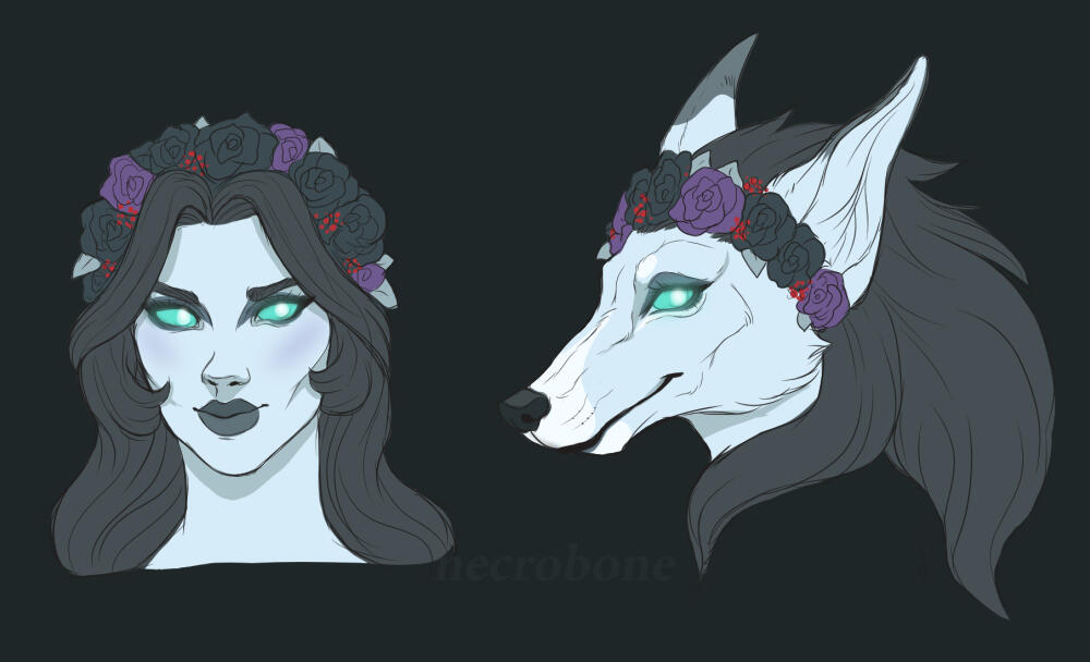 History: Mori is my personal fursona and in that regard, basically shares my own history, but with a sprinkle more fantasy.Notes: Always wears her necklace.Aesthetics: Dark gothic fantasy. Rain, spooky forests, marigolds, black cats, moody photography, bones, florals.