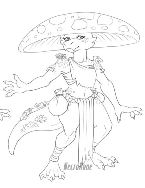 Name: EnokiAge: Early 20'sHeight: 3'5"Sex: FemalePronouns: She/HerSpecies: Kobold (Draconic)Orientation: StraightRole: BottomMarital Status: TakenOccupation: Mushroom FarmerAppearance:Personality: Bubbly, excitable, a little spacey.Likes: Mushrooms, warm things, food, Grall's fur.Dislikes: Cold, snow, ice.Favorite food: Mushrooms