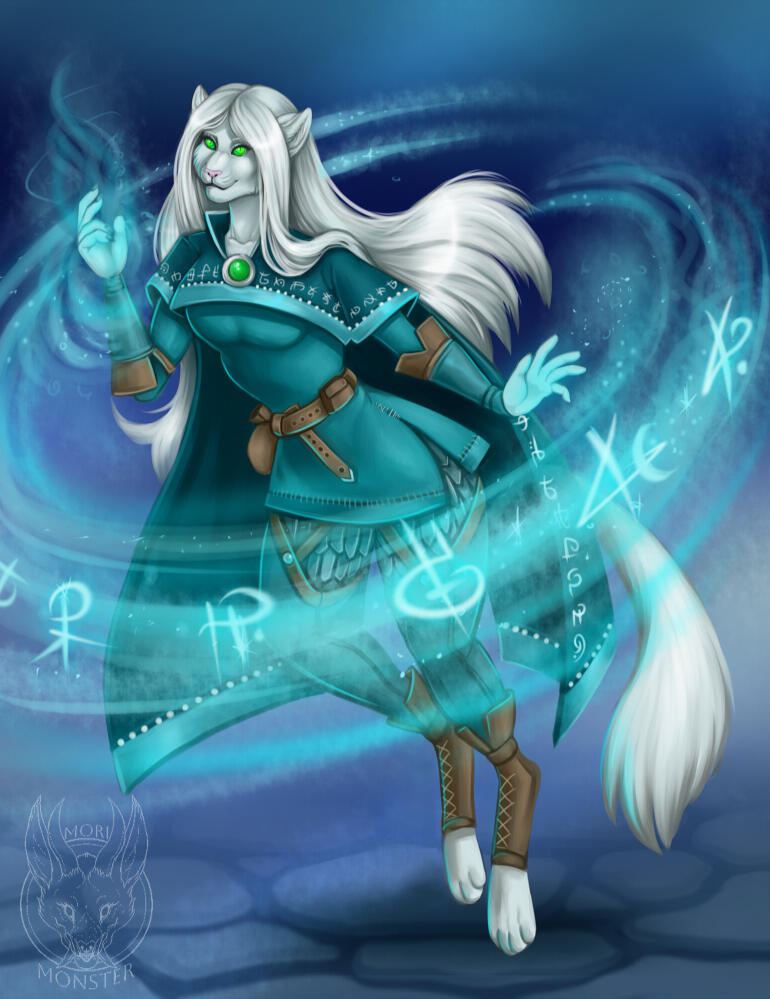 Name: RaythAge: AgelessHeight: 6'8"Sex: Bigender HermPronouns: She/HerSpecies: KitsuneOrientation: BisexualRole: Dominate TopOccupation: Counselor, EnchanterCardinal Direction: NorthElement: LightningAspect: Transformation and change, paired with acceptance and compassion. Rayth is a figure of change, with transformation abilities and the process of coming to terms with who you are and learning love and compassion for your self, as well as others. She loves you for who you are.Appearance: A white and black kitsune with a white crescent moon on her forehead. Long silvery hair falls to her hips. She has bright green eyes and four large fox-like tails.Personality: Playful but very kind, patient, and understanding. Large ears will gladly listen to any problem you have and offer kind words of advice.Likes: Cold weather, persimmons, snow, iced drinks.Dislikes: Bigots and transphobes. Not welcomed here.~