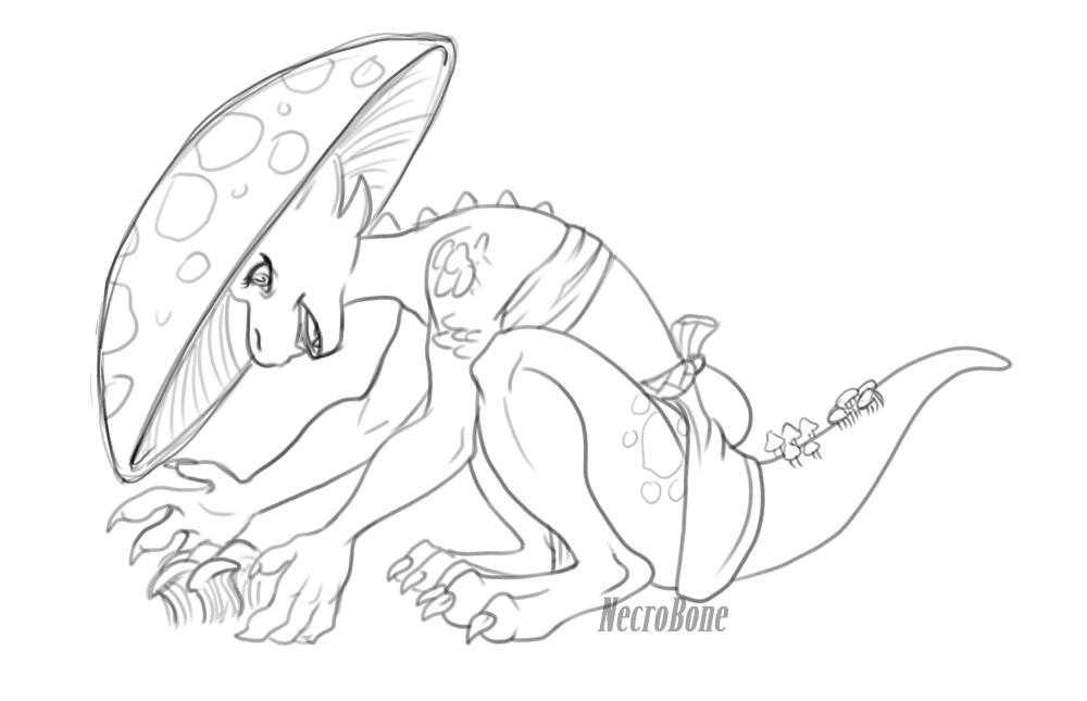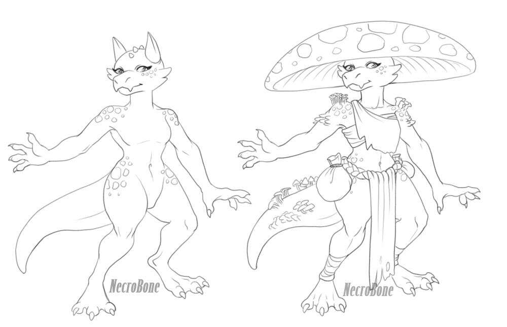 Name: EnokiAge: Early 20'sHeight: 3'5"Sex: FemalePronouns: She/HerSpecies: Kobold (Draconic)Orientation: StraightRole: BottomMarital Status: TakenOccupation: Mushroom FarmerAppearance:Personality: Bubbly, excitable, a little spacey.Likes: Mushrooms, warm things, food, Grall's fur.Dislikes: Cold, snow, ice.Favorite food: Mushrooms
