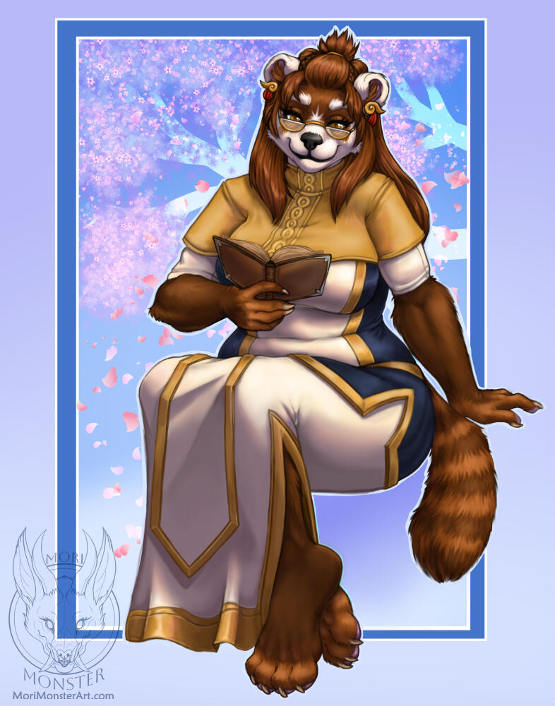 Name: Kyochi GottschalkMaiden Name: SunscrollAge: Late 40'sHeight: 6'4"Sex: FemalePronouns: She/HerSpecies: Mainland PandarenOrientation: StraightRole: Submissive BottomMarital Status: MarriedOccupation: Celestial Priestess, Lorewalker. Deputy Minister of the Gilneas Ministry of Health. Deaconess of the Gilneas Diocese.Appearance: Covered head to toe in white and gold attire, Kyo gives an air of regality and presumptuousness, though that couldn't be further from the truth. A maturely aged Pandaren, Kyo is as kind as she is red, which is to say.. a lot. Sporting more of the red-pandaren variant of fur, she stands well over 6ft and with a full figured form and a dark-striped tail behind her. It's quite obvious she is not a front-line fighter or the combat type, a pair of half-lensed glasses resting on her nose and usually seen carrying a lantern-topped staff that seems more as a symbolic and practical accessory than an actual weapon. Her hair matches her fur, a reddish-brown and lacking in any of the bright colored highlights that her kin often have. Her eyes are a golden honey brown, framed by a reddish mask of color against her otherwise white fur. Her appearance is always neat and tidy, if not overly feminine.Personality: Hailing from the Jade Forest on the mainlands of Pandaria, this pandaren has a penchant for history and healing of all sorts. Years of study and practice, whether within traditional means of scalpel and stitches, to a more magical approach with Chi, a blessing from her patron celestial, she has served as an avid scholar and healer from the Temple of the Jade Serpent. It's obvious this bear has a bit of experience under her belt, though remains ever eager to learn and study something new. Her studies and penchant for research is quite obvious, the woman often seen with books, tomes, notes, and an assortment of papers that contain lists, notes, tidbits of history, and anything else she deems worthy of note. Which, unfortunately, is a lot. A core belief that history must be preserved and that experience and stories of others can teach many lessons, she is a chronicler at heart, and may or may not note any information you may give her.As to be expected for her profession, Kyo is a huge nerd. Books, tomes, scrolls, pamphlets, notes and schematics; none of it is ever enough. With extensive research and practice going into her craft, she is always looking to learn more and keep up to date with her medical and healing knowledge, as well as documenting every step of the way. This curiosity also extends to flora, with the goal of learning of various herbs and plants and what properties are best for different ailments.Likes: Research, books, reading, documenting, organizing, studying, healing, alchemy, flora.Dislikes: Selfishness.Favorite food: Crab.